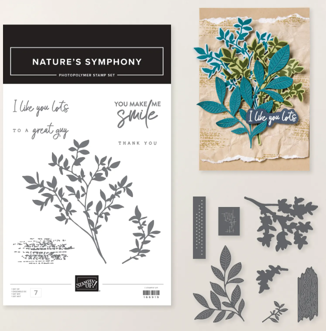 Elevate your crafting with the Nature’s Symphony Bundle. It includes stamps and dies that cut out leaves and sprigs as well as peek-through patterns, making it easy to add beautiful details to your cards, labels, and tags. The versatile sentiments and leafy designs are perfect for year-round crafting.